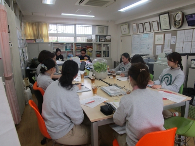 公開保育終了後は、見学したスタッフでポイントや疑問点・課題等を出し合いました。そして、その中で、年齢に合った教材や話し合いの進め方についての内容を3園共通認識のもと行っていくこととなりました。