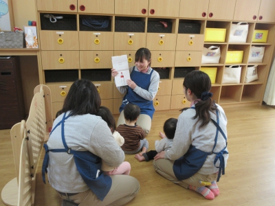 令和2年2月5日(水)にねやがわ成美の森こども園 ひよこ組(0歳児)にて法人内公開保育を行いました。