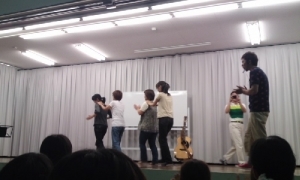 あそびうたの不思議なところは、見ず知らずの人とでも心を通わせて一緒に楽しめるところだと思います。体を動かして、歌って、笑いあう事で自然と心が通じ合う気がしました。