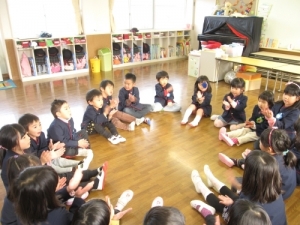 まずはリズムや動きを自分で確かめ、発達にあわせて各クラスにおろしていきます。早速クラスや延長保育などで実践していますが、「もう1回したい!」と、嬉しい声を聞かせてくれます。