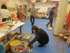 保育所保育指針の教育に関わるねらいの5領域がありますが、今回はその中のひとつ「表現」領域の中の造形的なあそびについて、平成28年1月8日(金)に四條畷学園短期大学 保育学科 香月 欣浩先生 主催のキッズアート研究所へ、理事長ともくれん保育園の職員たちと見学に行ってきました。