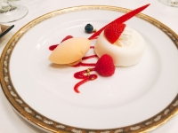 デザート「なめらかなクレームダンジュとクランブルのミルフイユ仕立て」