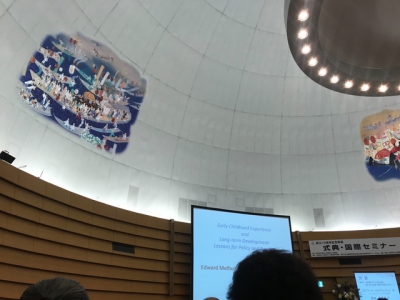 式典・国際セミナーは、オックスフォード大学・ロンドン大学教授 エドワード・メルウィッシュ 氏が具体的な研究実践に基づきエデュケアについての講義から始まり、