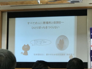 今回お話しして下さったのは豊中市社会福祉協議会 福祉推進室長をしている勝部麗子さんです。