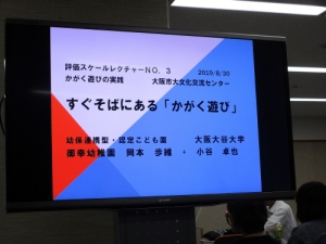 今回の研修のテーマが、乳幼児のかがく遊びを通して、子どもの気付きや学び、課題に取り組む姿の想定と結果の検証が保育環境スケールの中にある、自然/科学の項目や言葉、数量図の項目に当たり、実践園の事例をもとに保育環境の整え方や保育者の言葉かけの仕方を学ぶことができました。