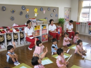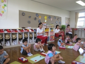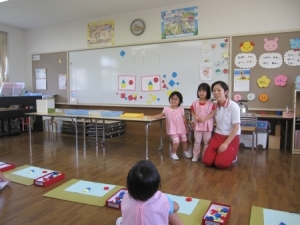 前回、5月22日(土)に行いました3歳児教材「スタートシリーズ はじめてのあそび」の園内研修から2ヶ月半が経ち、日々の保育の中で、子ども達と一緒にスタート教材に取り組んできました。
