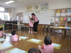 講師を招き、きりん組(3歳児)の子ども達と一緒に、実践形式での園内研修会を行いました!