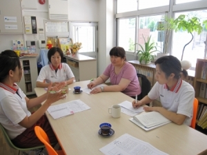 反省会では、今回の保育を見ていただいた中で、良点・改善点を細やかに、又、丁寧にご指導いただきました。