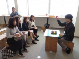 私たちも実際におもちゃに触れ、そのおもちゃで遊ぶ前の紹介として子ども達が「すごい、してみたい」と思う新たな遊びを学びました。