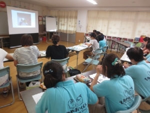 7月29日(金)に社会福祉法人 大阪誠昭会 寝屋保育園・もくれん保育園の2園合同で、『保育と環境 <一人一人の発達を支える遊び>』について研修を受けました。