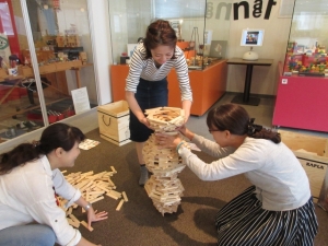 第五回目の今回は、以前も訪問したことのある「有馬玩具博物館」を寝屋保育園園長と職員で訪れ、様々な種類の積木の遊び方や、遊びの説明の仕方などを学びました。