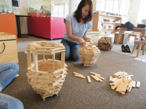 当保育園にもある積木があったので、実際に作ってみましたが、いつまでも高く積み上げることが出来て夢中になりました。子ども達にも難しくなくどんどん積み上げることが出来る積木なので、友達と協力して大きなものを作ったら、きっと楽しく、夢中になって遊ぶのではないかと、想像するだけでワクワクしました!