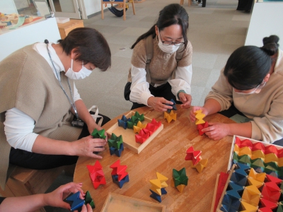 「有馬玩具博物館」をねやがわ寝屋の森こども園の園長と職員、姉妹園のねやがわ成美の森こども園の職員で訪れ、様々な種類の積み木を使った遊び方や展開の仕方などを学ばせて頂きました。