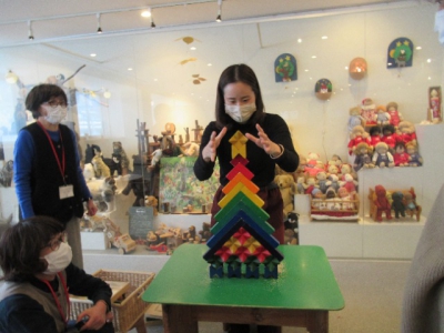 博物館のスタッフの方々が積み木の魅力を丁寧に教えて下さいました。実際に積み木を積む様子を見せてもらうと、様々な形に変化を遂げていき、マジックを見ているかのような錯覚に陥るほど魅了されました。