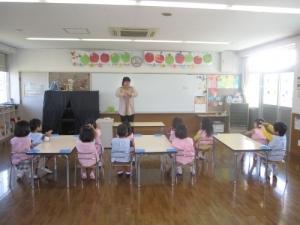 昨日、社団法人 日本幼年教育会の教育顧問:中川登美子先生、研究部講師:小林まき子先生による、めざましあそび新教材の実践保育がぞう組(4才児)のお友達対象に行われました。