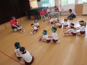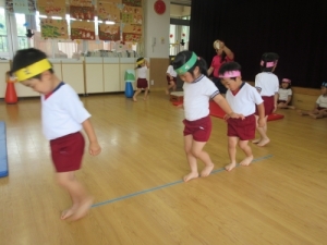2017年6月28日(水)にきりん組(3歳児)にて「運動遊び 『忍者になろう』(跳躍運動)」を楽しみました。