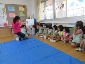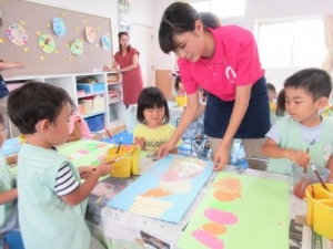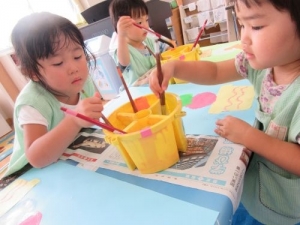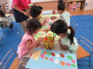 2017年 7月13日 きりん組(3歳児)にて、絵の具を使いアイスクリーム作りを行いました。