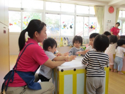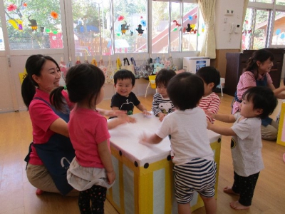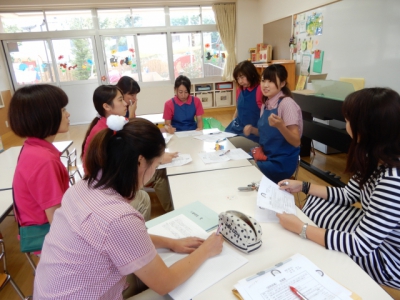 活動の後は、参加した保育教諭で改善点や内容を話し合い、より良い教育・保育を行っていけるように意見を出し合い、今後も色々な素材に触れながら制作を楽しんだりと様々な活動に広げていきたいと思います。