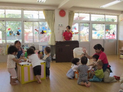 2019年10月10日にりす組(0,1歳児)にて「楽器に触れた音遊び」を行いました。