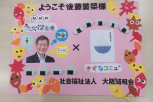 それがとても嬉しくて、わざわざ東京からお越しいただいた後藤さんに感謝と歓迎の意味を込めて「ウェルカムボード」を作成し、インタビュー録音が行われる姉妹園であるねやがわくこの木保育園に飾りました。