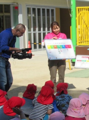 そして、「健康長寿のためには子どもの頃からの食生活が大切である」、ひいては「子どもに食事を作ったり与えたりする大人にこそ食育というものが必要なのでは?」という考えのもと、姉妹園ねやがわ成美の森こども園が武庫川女子大学 国際健康開発研究所、寝屋川市薬剤師会と共同で取り組む『オトナの食育』(詳しくはねやがわ成美の森こども園トピックスの記事をご覧ください)について、フォーラム内で紹介したいというお声が掛かり、先日撮影が行われました。