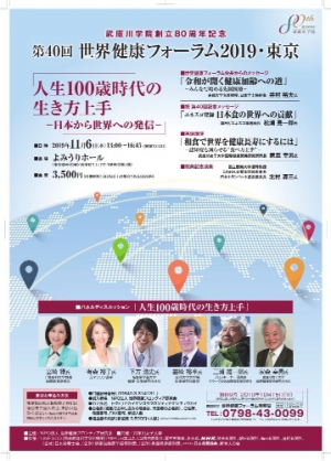 創立80周年を記念して、【第40回 世界健康フォーラム2019・東京】が”人生100歳時代の生き方上手ー日本から世界への発信”をテーマに開催されます。