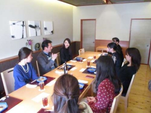 おいしい日本料理をいただきながらの懇親会では、4名の内定者は皆緊張しながらも、自己紹介をしたり、仕事に対する前向きな思いを話してくれ、同期がいる心強さを感じながら、これから一緒に仕事をしていくんだという希望に満ちた様子でした。