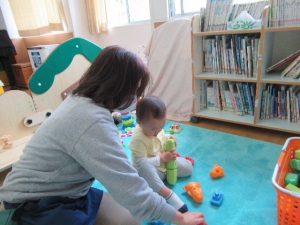 説明の間、お子様は保育教諭と一緒に園のおもちゃで楽しく遊んで過ごしました。