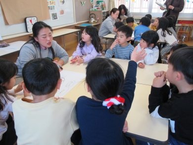 サークルになって意見を出し合ったり、少人数のグループになってさらに意見を深堀りしたりと、「豆まき」へのイメージを膨らませていきました。