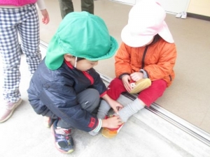 これはすべてをしてあげるのではなく、履き方を教えてあげるうちに1歳児や2歳児の子どもたちが「自分たちでしてみよう」という気持ちを育てていることに繋がります。