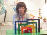 主に、積み木のあそび方を教えて頂いたのですが、丸や三角、四角だけに限らず、変わった形の積み木もあり、一目見ただけでは、正直なところ、あそび方がよく分かりませんでした。