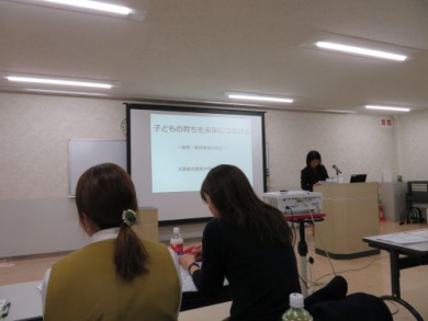 平成30年度に施行された「幼保連携型認定こども園教育・保育要領」の改訂のポイントやこれから変化していく時代の中で、こども園(幼稚園・保育園)・小学校・中学校・高校の縦の繋がりの大切さ、学校種・園種を越えて子ども達が育んでいく力である「3本の柱」から未来への繋がりを学びました。