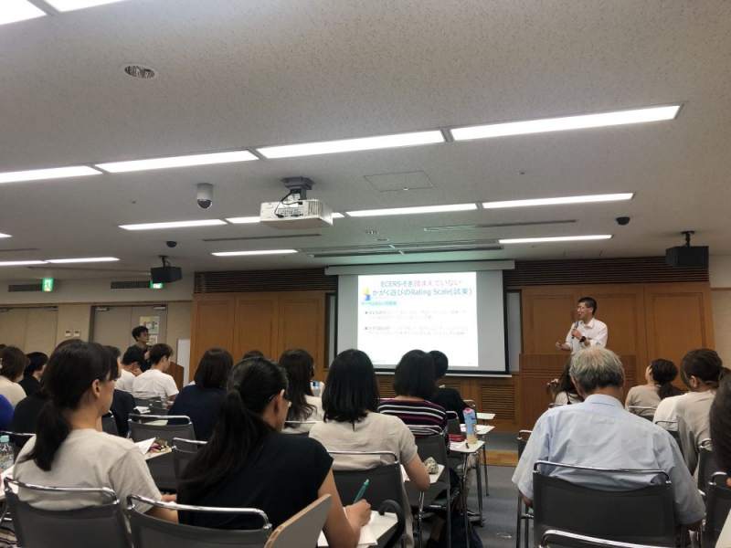 今回の研修では、とある園が ”かがく遊び” を展開していくにあたり、保育の質を測るツールである『保育環境評価スケール』の視点を用いて教育・保育を振り返りながら質の向上につなげていった事例から、子ども達が遊びを通して学びを得るためには、いかに子どもを取り巻く環境が大きな影響力をもっているかということを改めて学びました。