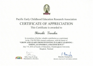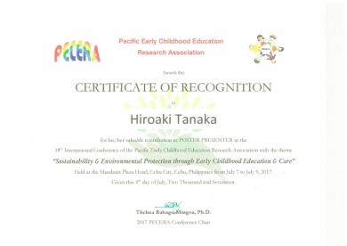 保育総合研究会からの派遣で、2016年にタイ(バンコク)、2017年にフィリピン(セブ島)で開催されたPECERA(環太平洋乳幼児教育学会)の国際学会にてポスタープレゼンテーションを行ってきました。