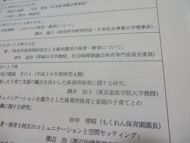 この学術研究集会は保育所等の役職員、大学等の教員・研究者、保育・教育行政担当者100名以上が参加する研究集会で、研究発表者も大学等の教員が多数を占める中、僭越ながら研究発表等大役を務めてきました。
