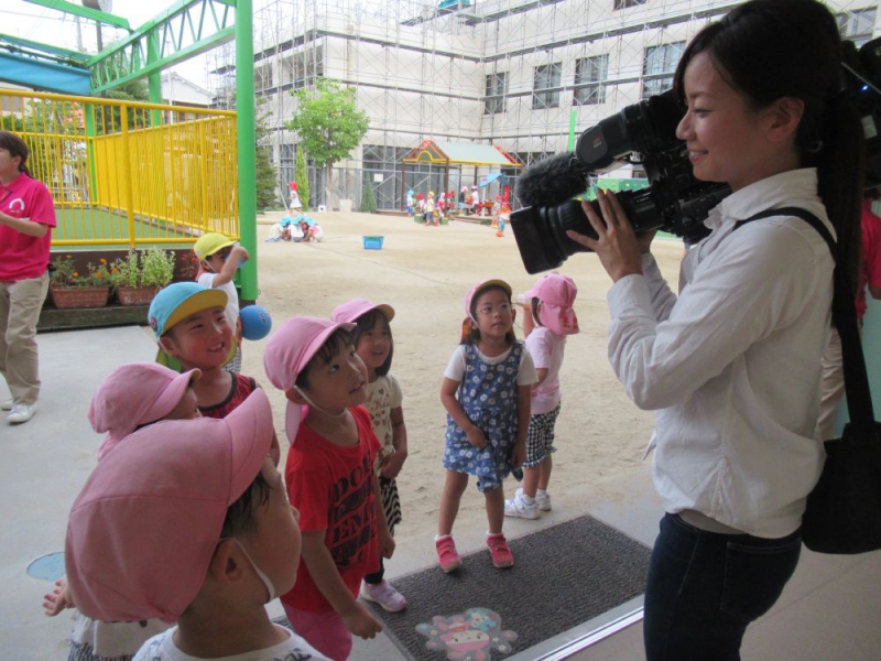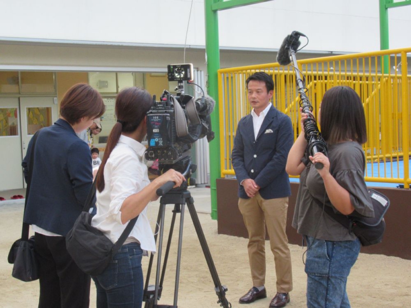 以前にも、寝屋川市の「待機児童ZEROプラン」の件でTV取材が入りましたが、今回も大きなカメラやマイクに職員一同は緊張。