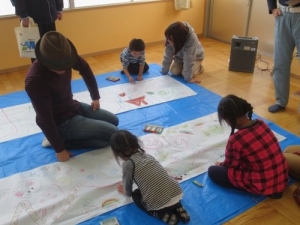 サイン会が終わった後は、ふくだとしお先生と一緒に模造紙にお絵描きを楽しみました。