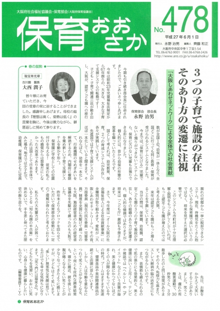 2015年06月19日(金) 会員情報誌に紹介されました! カテゴリー:業界誌・情報誌掲載 当園が大阪府社会福祉協議会 保育部会の会員情報誌に紹介されました。 大阪府社会福祉協議会 保育部会発行の会員情報誌「保育おおさか」の保育園・認定こども園をたずねて、という記事で当園が紹介されました。 記事のPDFを添付しましたので、ぜひご覧ください! (文責:園長 田中啓昭) 保育おおさかH27.6月号