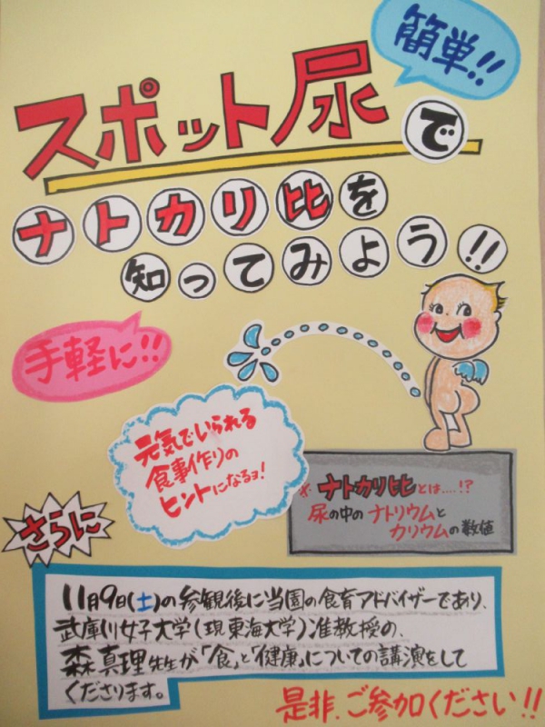そのヒントを探るため、尿検査で体内のナトリウム/カリウム比を調べ、その数値を見ながら森真理先生のお話を聞く・・・そのような手順を踏んで行ってきた『オトナの食育』の取り組み。