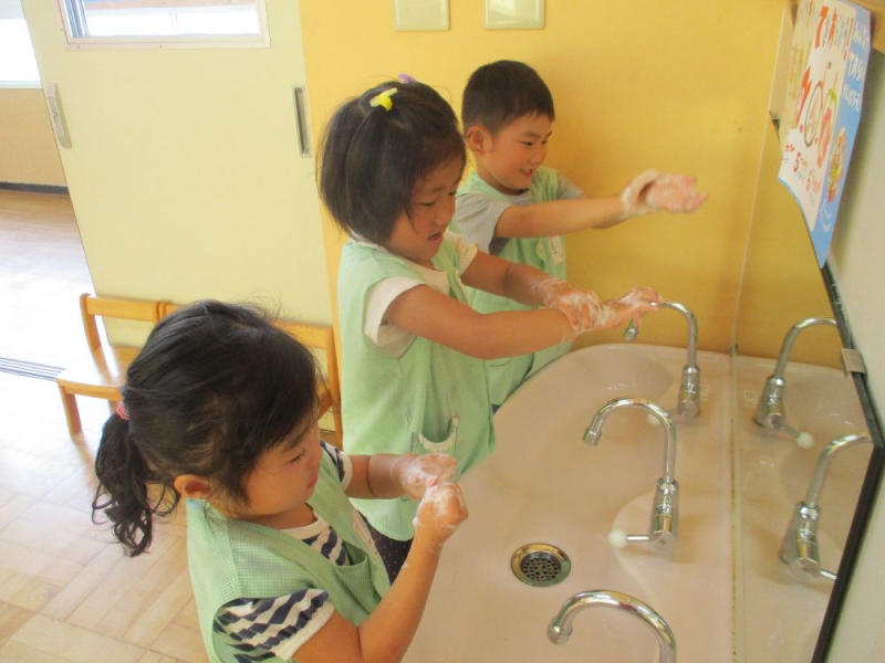 そして、日常のあらゆる場面で手洗いを頻繁に行うようになり、コロナウイルス感染予防を意識した子ども達は手洗いがどんどん上手になっていっています。