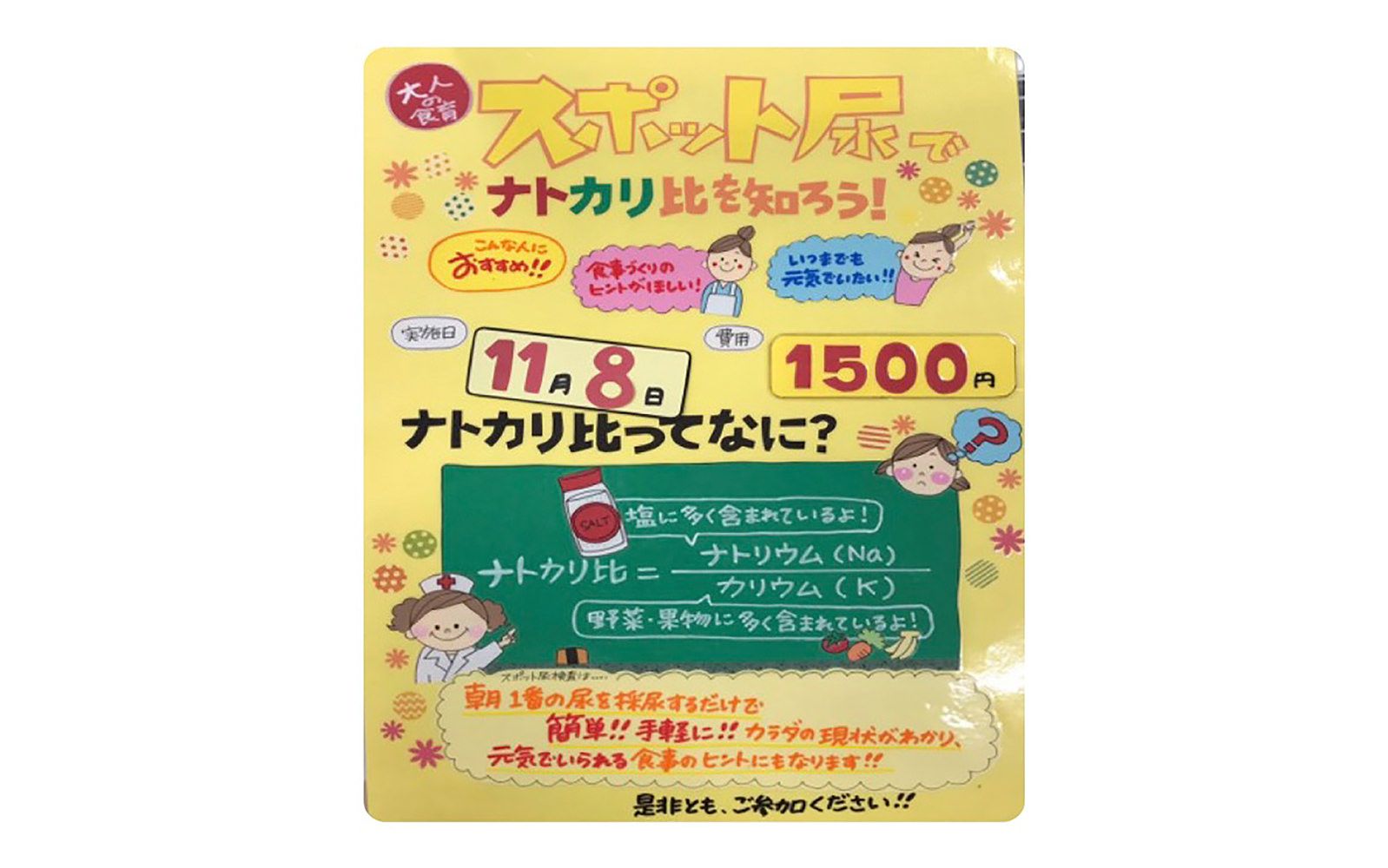 尿検査まではちょっとと思われる方でも参加いただけますので、少しでも興味を持たれましたら次回開催時にぜひご参加ください。