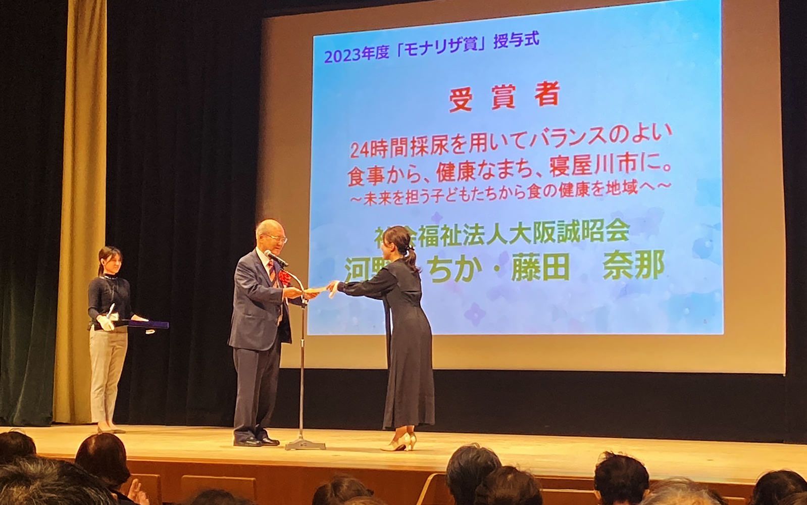 『モナリザ賞』とは、食の現状を24時間採尿の結果をもとに栄養改善に努め、一人ひとりの命の価値を十分に発揮できるよう、健康寿命の延伸に繋がる「食育」や「食環境」の改善に寄与する研究や実践活動に表彰されるものです。