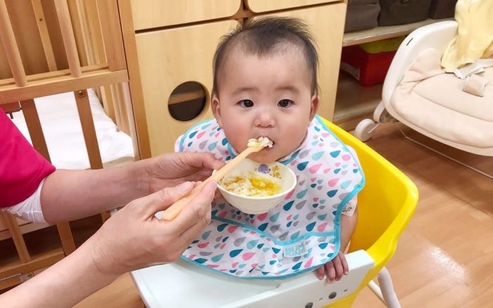 ミルクを欲しがる様子が多くみられるのであれば、最初はミルク粥などのミルクに近いものから少しずつ食事に慣れることができるようにするのも一つの方法です。ミルクに近いものを哺乳瓶ではなく、スプーンから食べるという経験を少しづつ増やしてあげましょう。