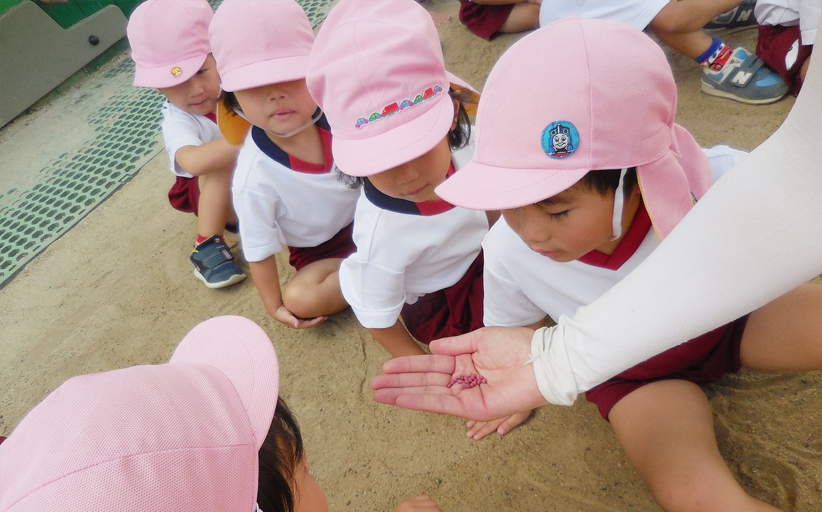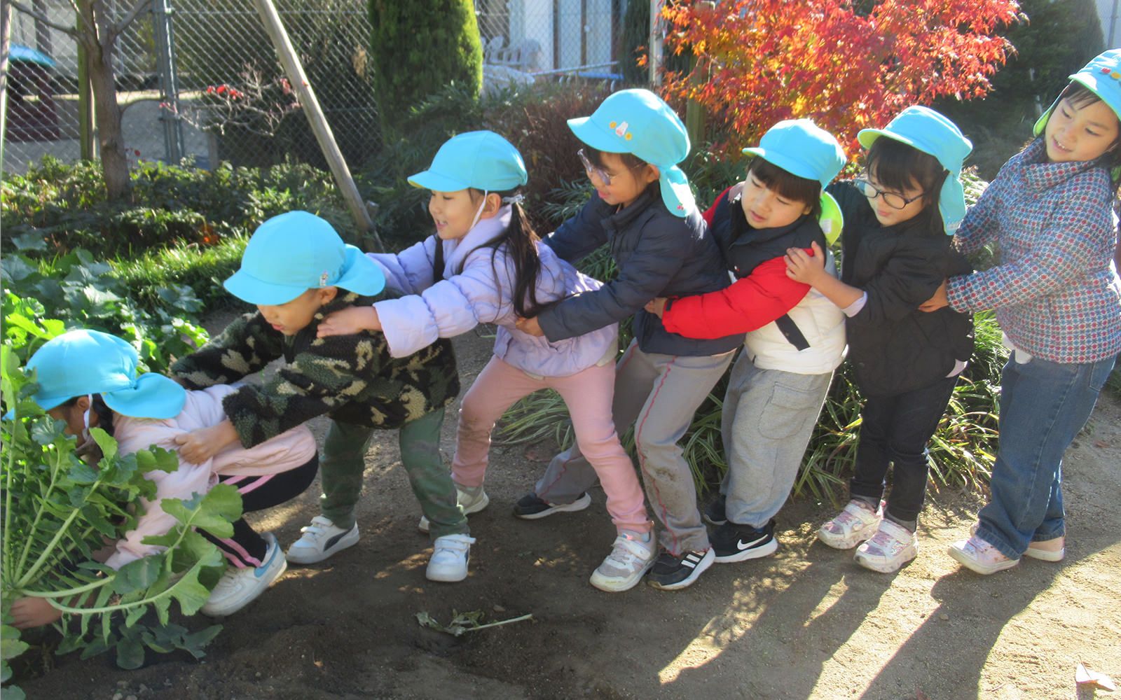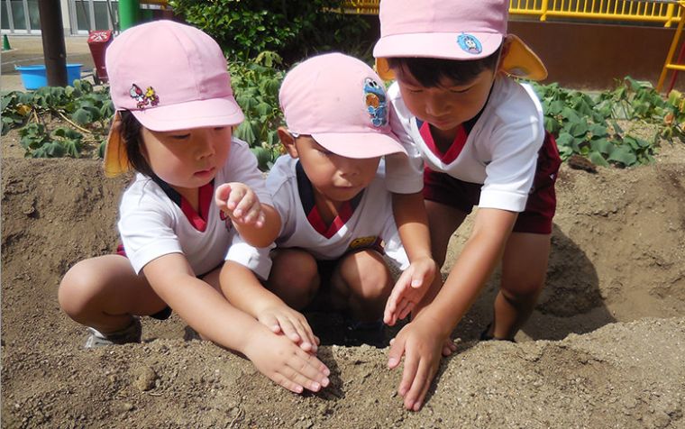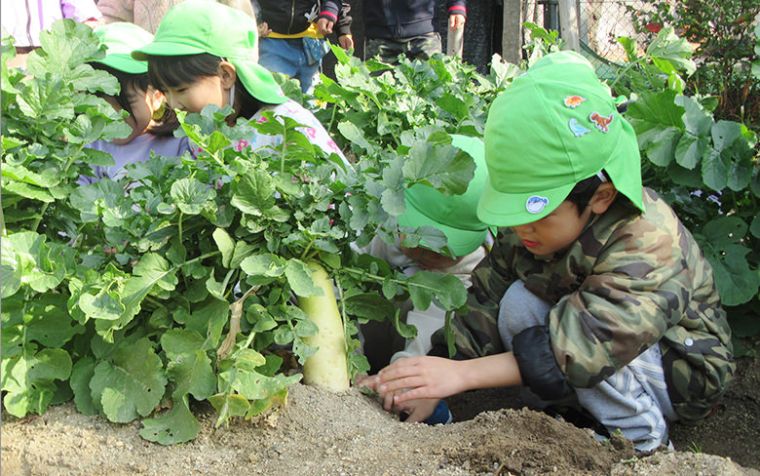乳幼児教育において私たちが大切にしていることは、その体験を通して様々なことに不思議を感じ、そして興味の幅を広げてあげること。屋外活動である農園での体験は、自然と触れ合いながらさまざまなことに興味を抱くきっかけづくりにうってつけです。