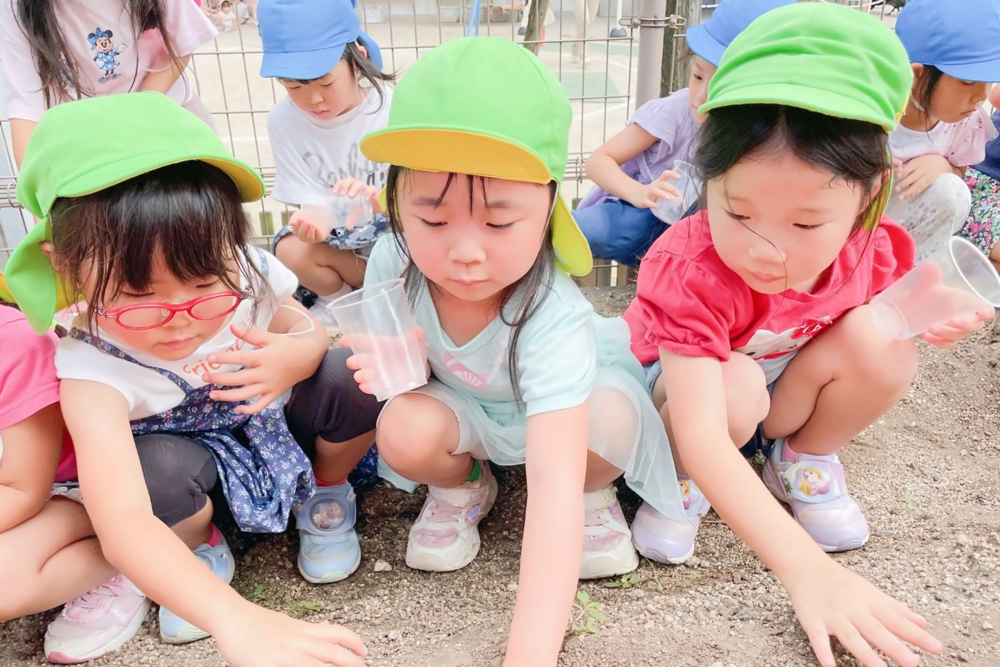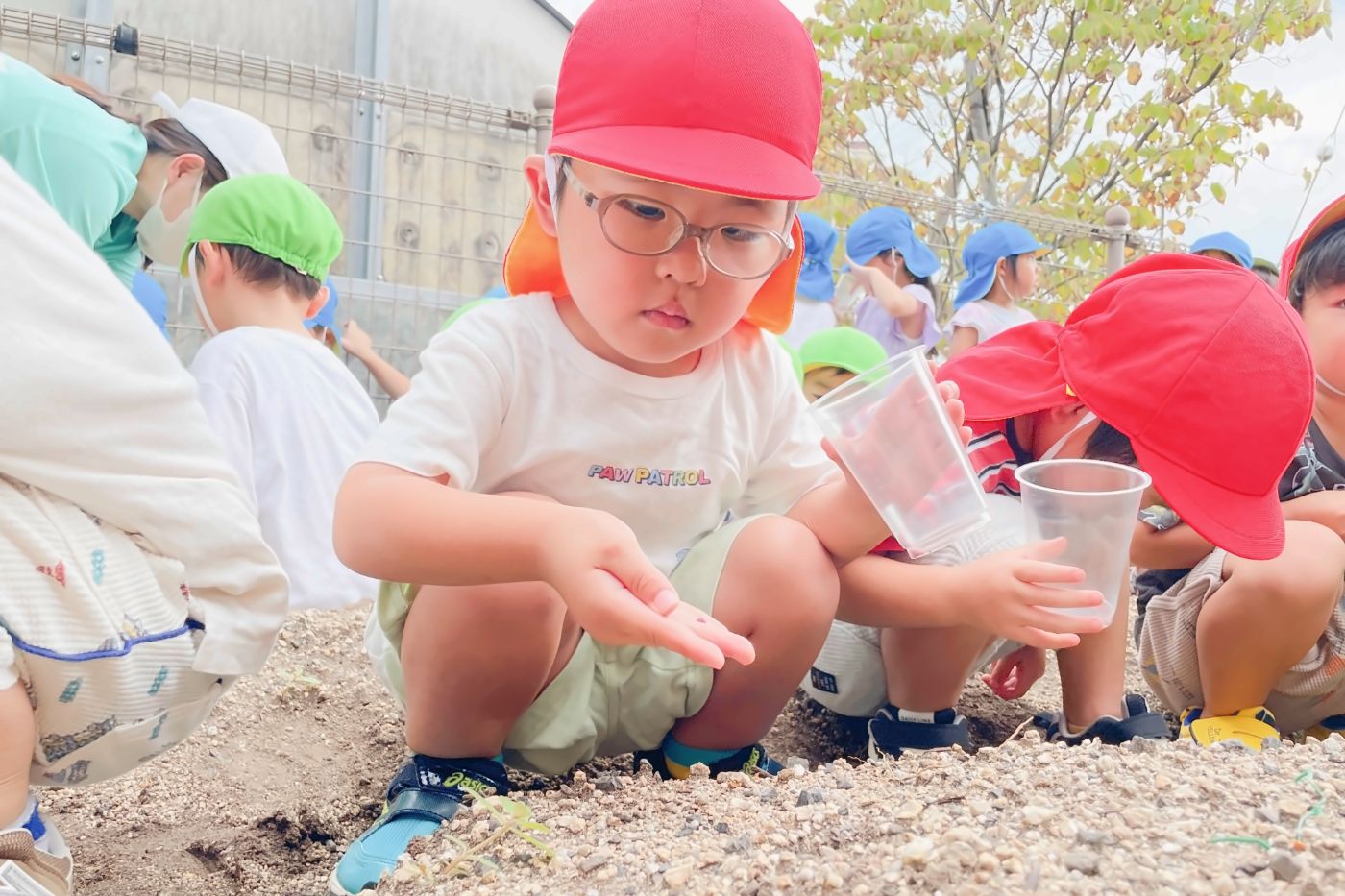 小さな種を優しく持って、土のお布団を掛けます。みんなで「おおきくな~れ!」「おおきくな~れ!」とおまじないをかけている様子も微笑ましい光景です。