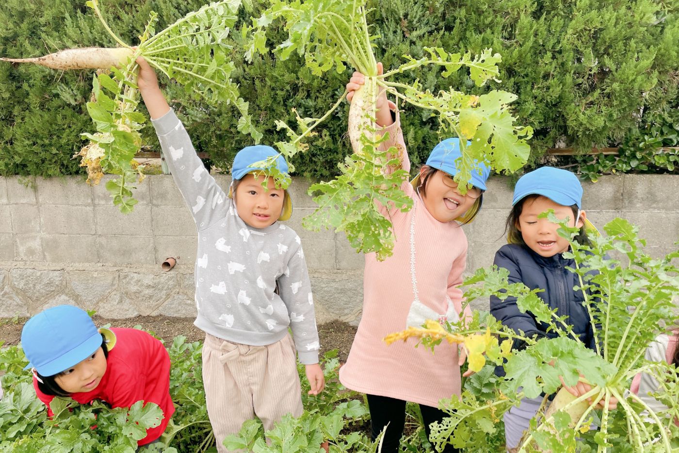 秋に植えた種も子どもたちの成長と共に大きく生長し、葉もたくさん生えて12月になると収穫できる日がきます。