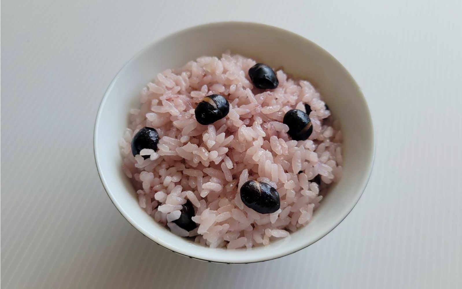 - 煎り黒豆と酢を加え、浸水時間を充分とってから炊飯する。
